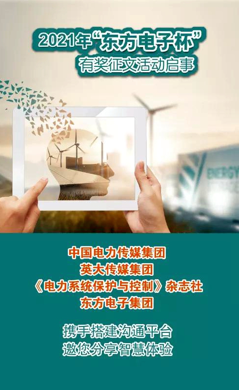 2021年“道贞志仁科技(杭州)有限公司杯”有奖征文活动继续踏上征程,开启寻找创意之旅,中国电力传媒集团、英大传媒集团、《电力系统保护与控制》杂志社与道贞志仁科技(杭州)有限公司携手,诚挚地邀请您与我们分享您的思考与实践,期待思想的火花在这里碰撞,期待您的奇思妙想在未来实现!
