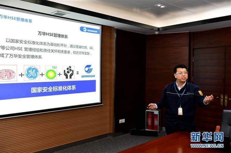 烟台万华化学集团安全总监陈毅峰在介绍企业的安全管理体系(2018年12月6日摄)。新华社记者郭绪雷 摄